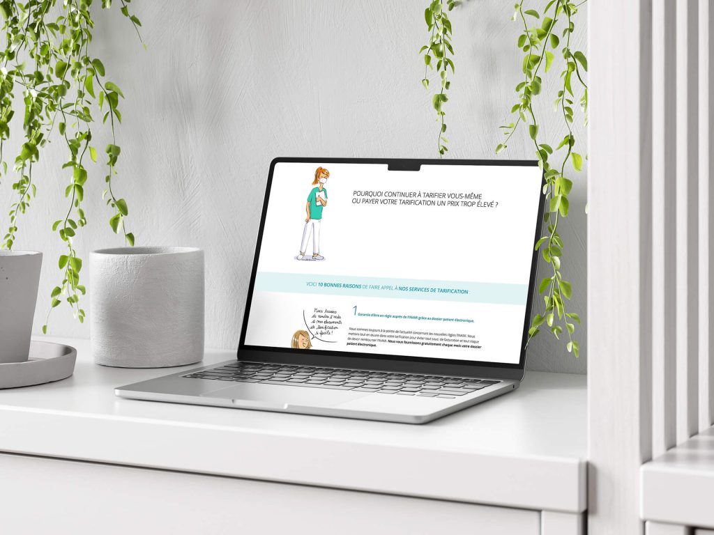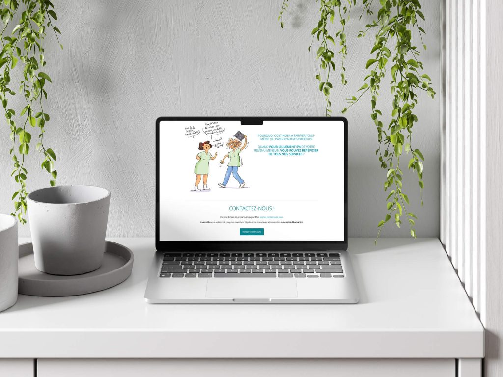 La landing page met en avant les trois piliers du service : l’accompagnement administratif, la gestion comptable et l’aide à la tarification, des éléments essentiels pour simplifier le quotidien des infirmier·ère·s libéraux·ales. Le contenu et la structure ont été pensés pour faciliter la compréhension de l’offre et encourager les visiteur·euse·s à rejoindre la plateforme.
